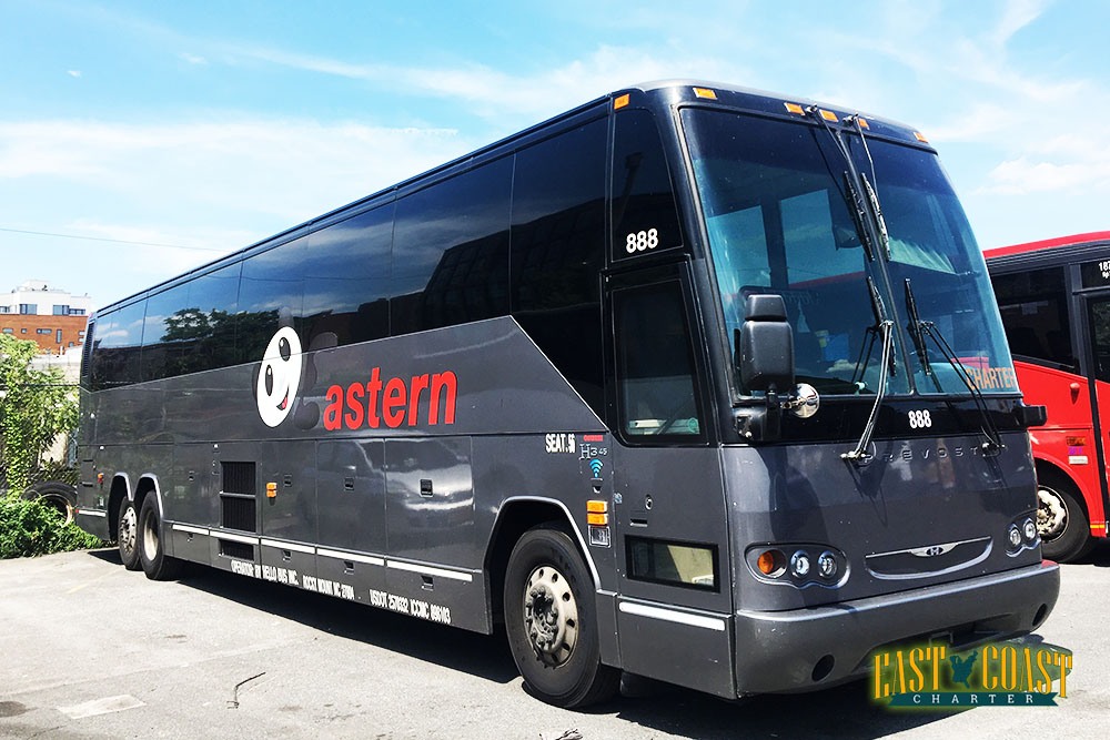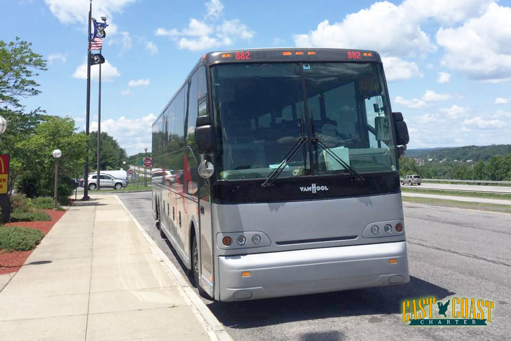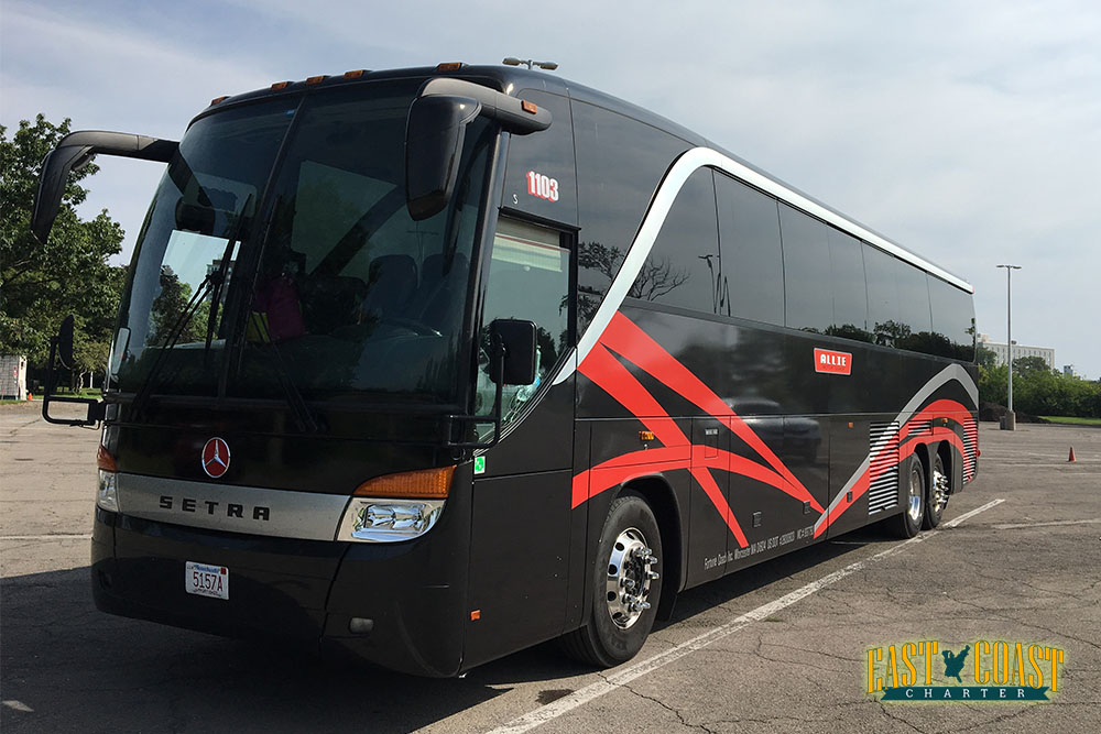 East Coast Charter features clean, spacious and well-maintained charter buses. Our 56 – 61 passenger coaches consist of Vanhool, Setra and Prevost Motorcoaches - which are made by some of the best bus manufacturer in the world. Some of the features on our fleet are comfortable plush padded reclining seats with foot rests, reading lights, TV monitors to watch DVD movies, climate controlled, clean onboard restroom, and several large underfloor luggage compartments for storage. Making sure that you and your group will get to the destination in a safe and comfortable ride!
